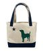 Constructed for longevity, the bag is equipped with deep navy blue handles and a matching double-reinforced navy bottom, ensuring it maintains its shape and strength even when fully loaded.  This tote combines functional utility with a clean, canine aesthetic.
